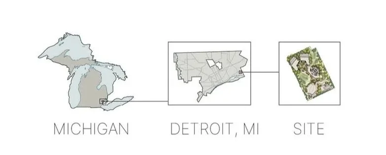 For my senior capstone project, I designed a site within an abandoned lot in Detroit with the goal of fostering economic and environmental stability for local residents. I selected a neighborhood with a predominantly Black and low-income population and intentionally designed the project to address the community’s needs—taking careful measures to prevent gentrification and foster a sense of belonging.