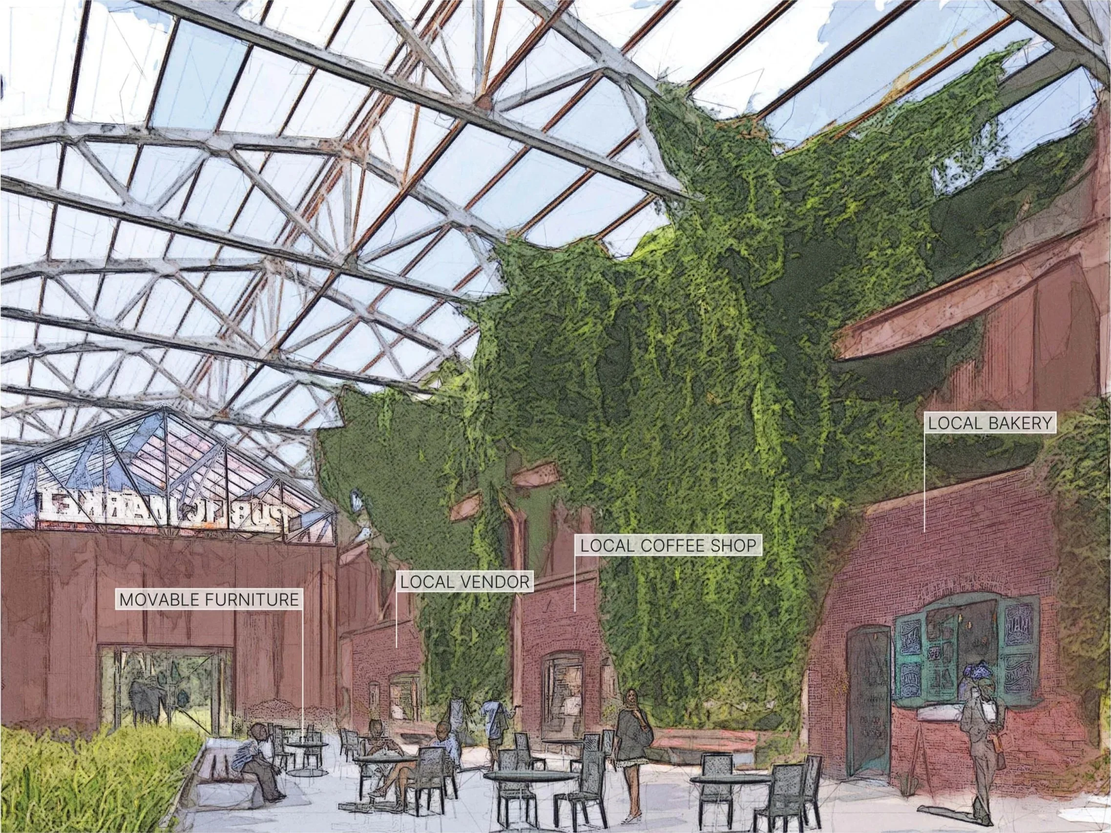 employment opportunities. The micro-business market shown in the rendering below aims to counteract the local poverty by housing 10 local businesses. By providing job opportunities, this park will foster inclusive economic recovery.