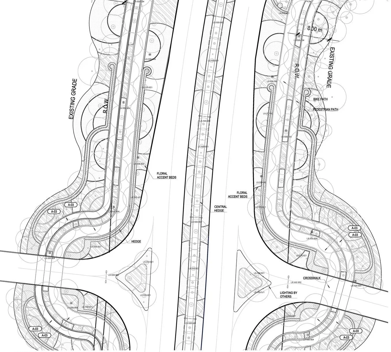 The design for the roundabouts draw inspiration from Wynn’s distinctive style, featuring vibrant, manicured flower beds, structured hedges and sculpted topiary forms. Additionally, these designs contribute to an overall cohesive and holistic site aesthetic.