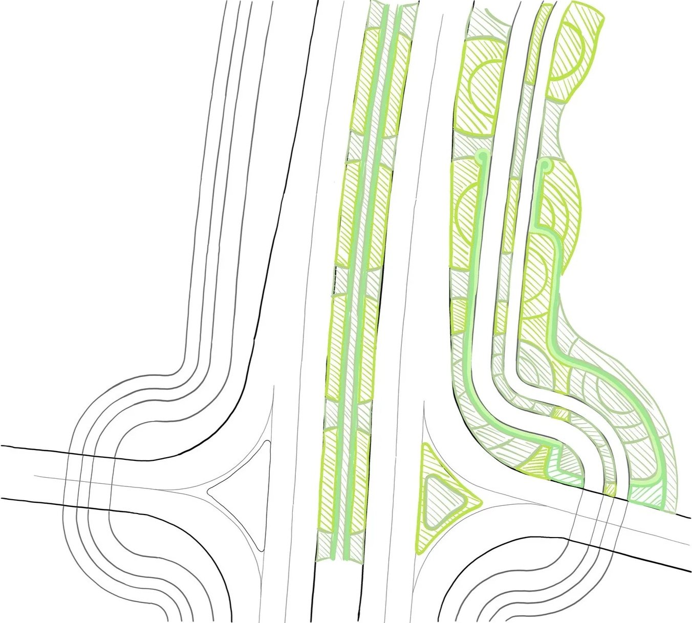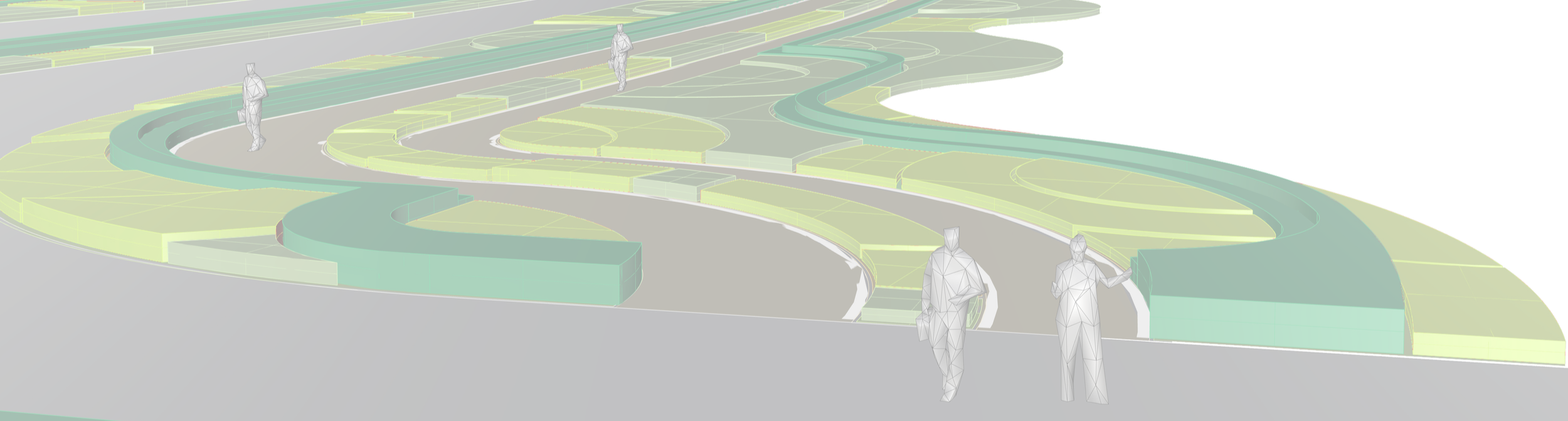 Through sketching and modeling, I designed a planting plan for a portion of the spine road that was applied across the entire public realm leading up to the hotel.