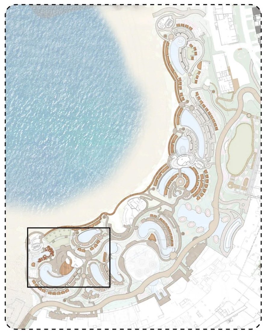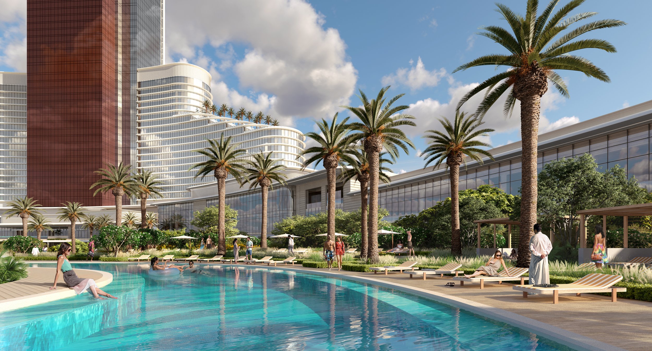 The Wynn Al Marjan, located on a man-made island in Ras Al Khaimah, UAE, is currently undergoing construction and scheduled to open in early 2027. The landscape design draws strong inspiration from Wynn’s signature aesthetic, blending classical European elegance, luxury and modern design influences with